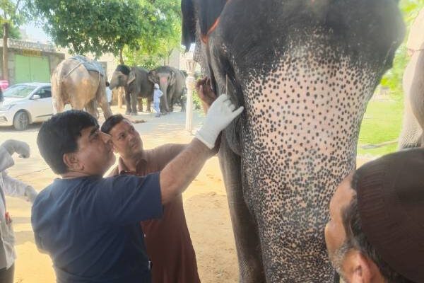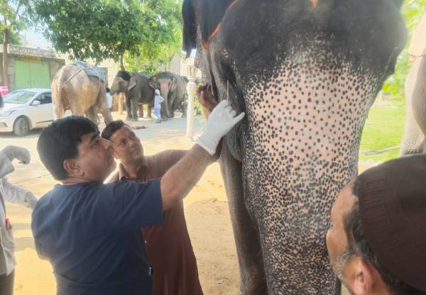 आमेर के कुंडा स्थित हाथी गांव में वन विभाग द्वारा आयोजित हाथी स्वास्थ्य परीक्षण शिविर