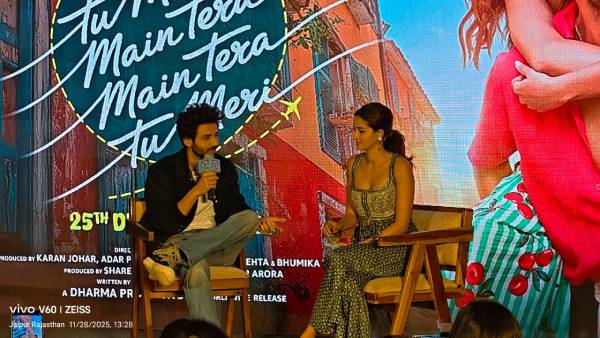 प्रेस कॉन्फ्रेंस में चमके स्टार्स, शेयर किए शूटिंग के दिलचस्प अनुभव विशाल–शेखर की धुन और अंविता दत्त के बोल ने बनाया गाना खास कार्तिक बोले किरदार मेरे दिल के बेहद करीब, अनन्या ने कहा—कहानी दर्शकों के दिल को छुएगी जयपुर। बहुप्रतीक्षित फिल्म ‘तू मेरी मैं तेरा, मैं तेरा तू मेरी’ का टाइटल ट्रैक आज जयपुर…